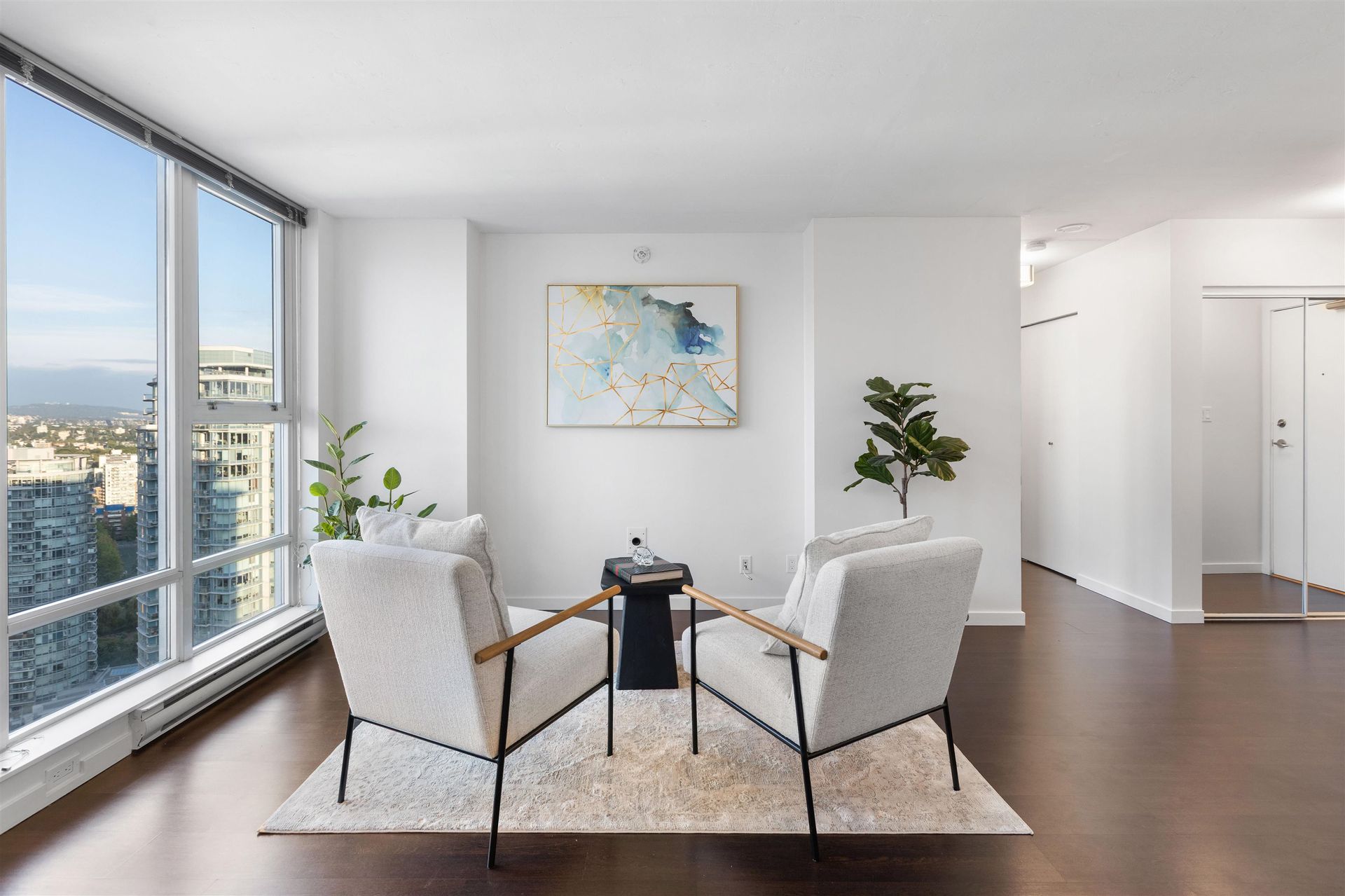 Experience vibrant city living in this bright 1 Bed + Den, featuring sweeping panoramic views of the mountains, ocean, and skyline. The sleek, turnkey interior is ready to move in, with a versatile layout perfect for a home office, guest room, or creative space.