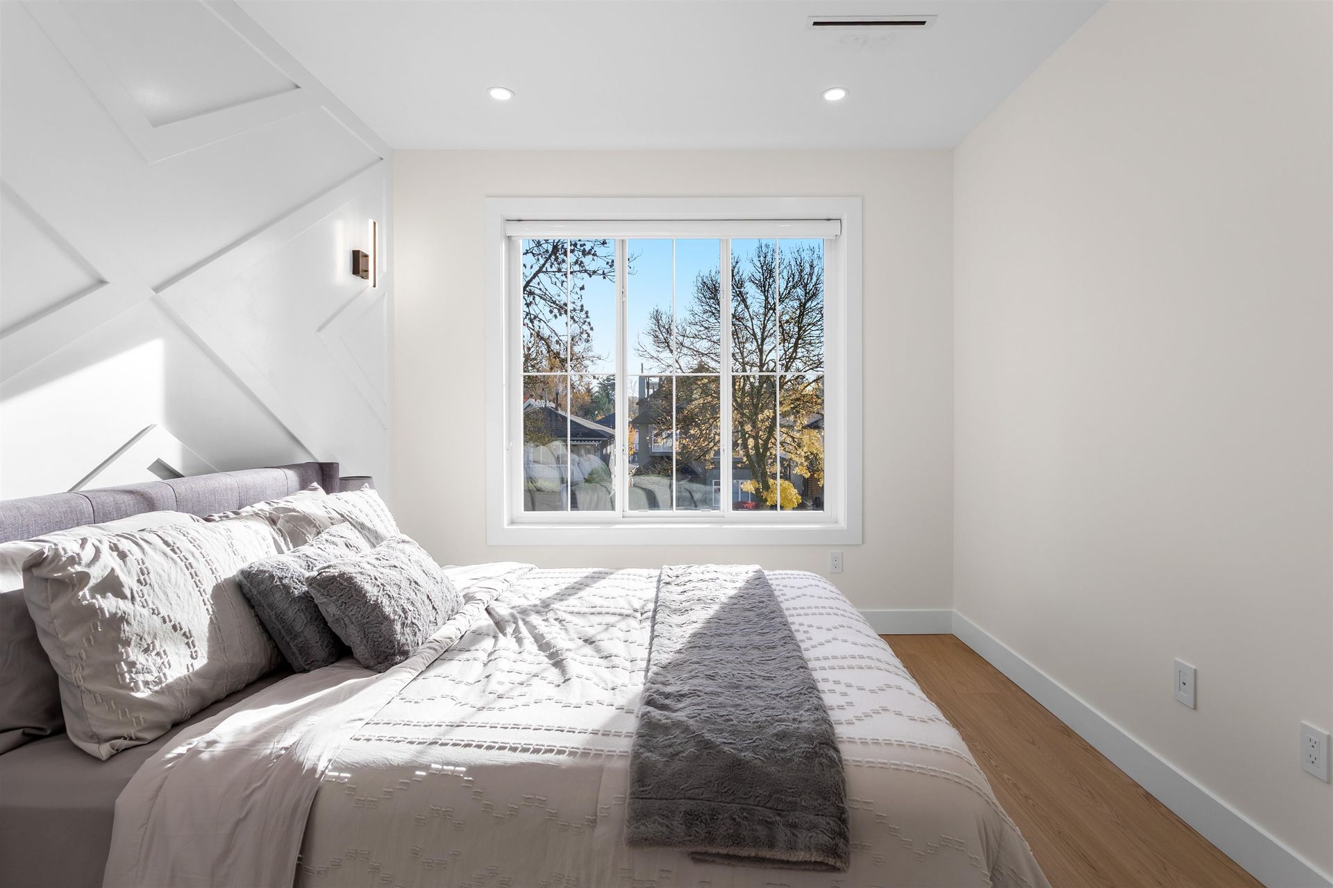 Beautifully crafted back unit duplex offering 3 bed 4 bath open concept living floor plan. Premium millwork, design package + elegant finishing built with attention to detail + functionality in mind. Urban farmhouse style that offers warm and inviting spaces from the moment you step inside. Kitchen is equipped w/ Fisher-Paykel integrated appliances package, custom cabinetry, wine cooler and pantry space. Engineered hardwood flooring, A/C heat pump, security systems, radiant floor heating + single car garages w/ EV parking. Quick access to schools, amenities, HWY1 access + short drive to Hastings Street shops.